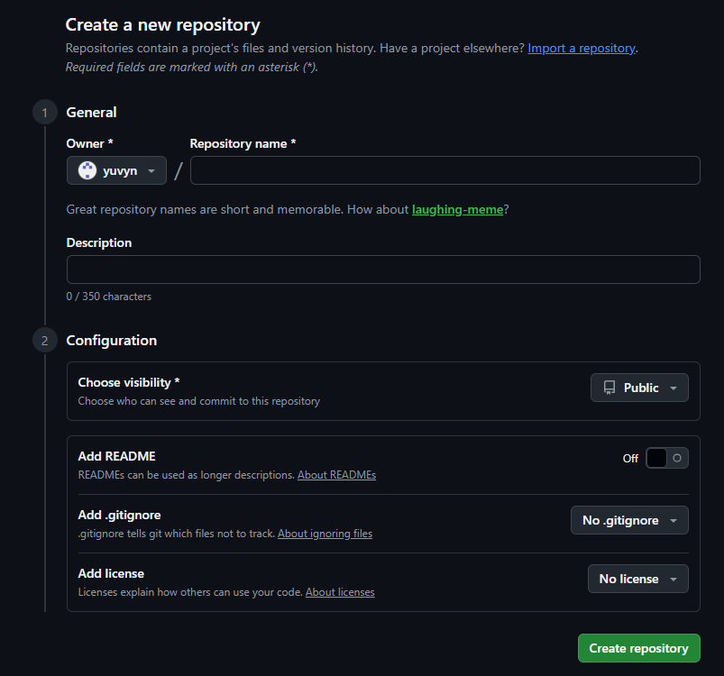 - Repository name → 레포지토리 명