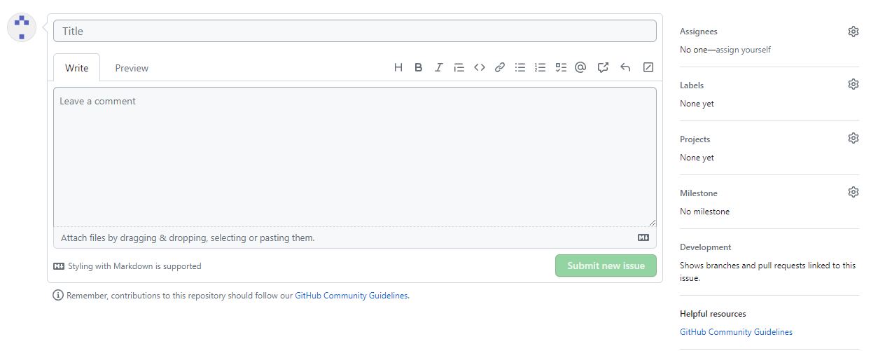 필요한것들을 적어주시고 Submit new issue를 클릭해주세요.