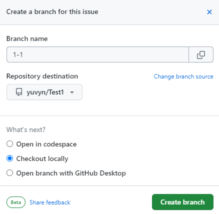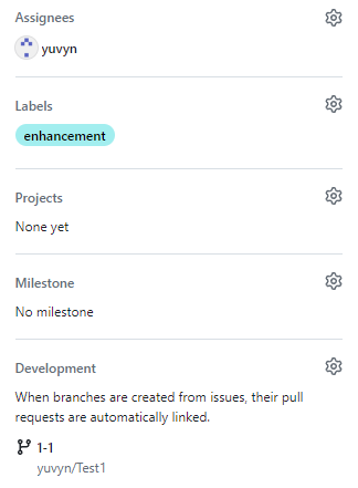 - Develcopment : 해당 이슈에 대한 브랜치 생성